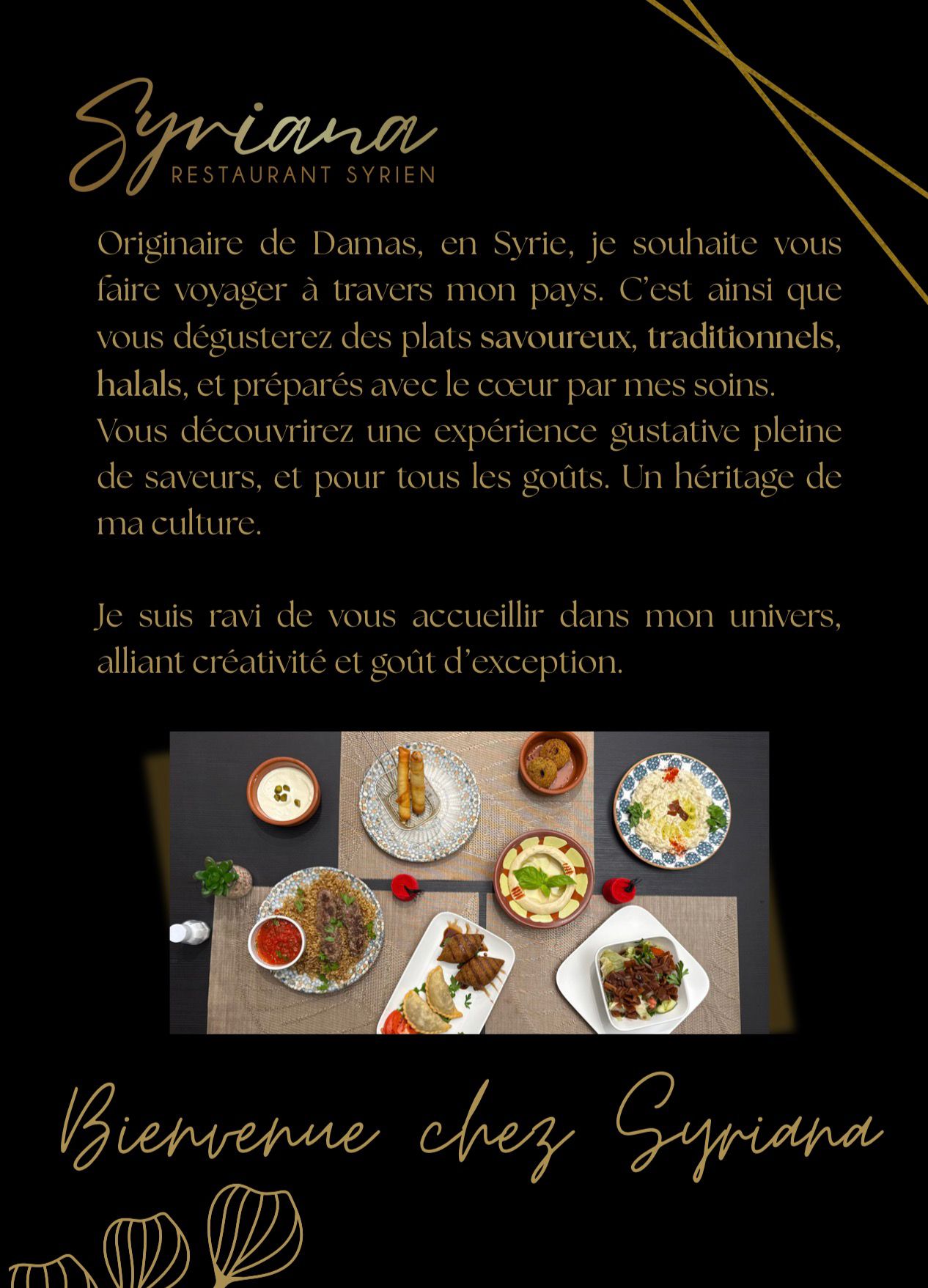 Un accueil chaleureux vous attend au SYRIANA . Nous sommes ravis d'être votre hôte à FORBACH ! Nous vous invitons à déguster notre authentique cuisine syrienne.